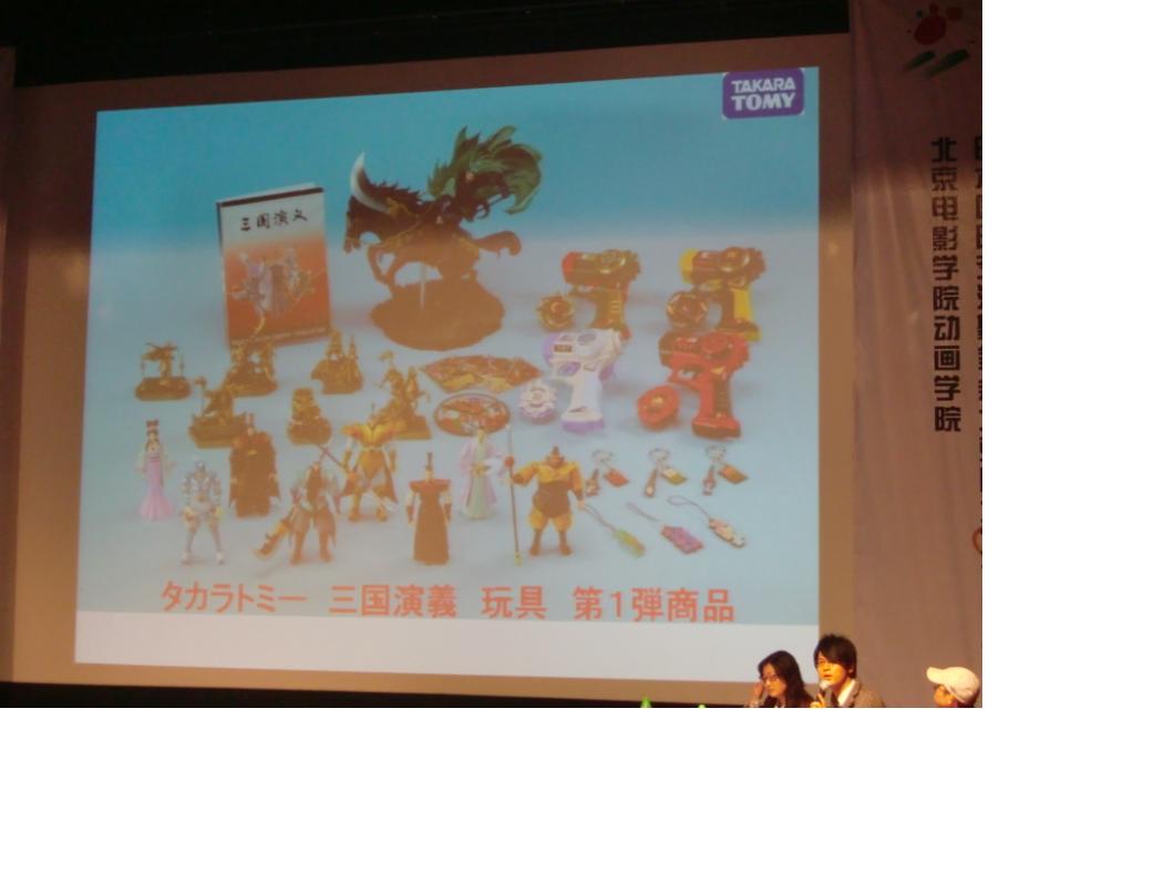 講師として招かれていたのは制作元であるアニメ会社社長とタカラトミーの役員。なぜ日本のおもちゃ会社が同席しているのかというと、そもそもこのアニメ「三国演義」、日中共同を謳ってはいるがその実際はほぼ完全な中国製。タカラトミーが資金提供をして中国でのグッズ展開を狙っているというもので、アニメーターから何から全て中国人が担っているのだ。