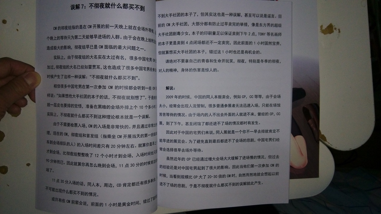 表紙はエロ同人だが、中身は全部文章。日本のコミケにも多数参加した作者が書いたコミケに関する評論文。日本のコミケを紹介し、CPなど中国のイベントを分析しようとしている。