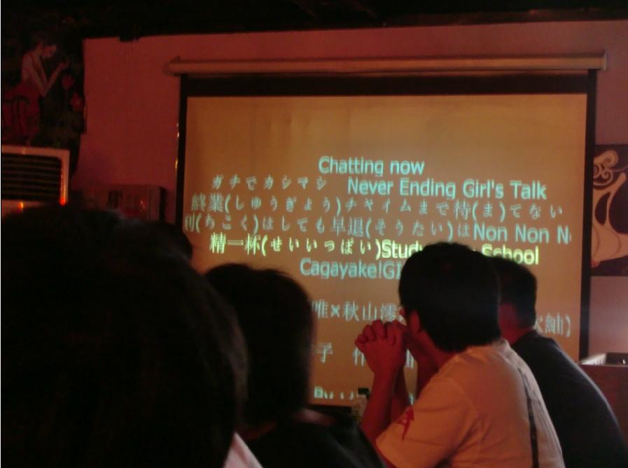 一曲目からなんだかよくわからないアニソンだった。同席した日本人に話を聞いたら、彼は知っているようで歌手と一緒にソラで歌っていた。ボクはスクリーンに流れる歌詞を見ても追いつくのがやっとだった。