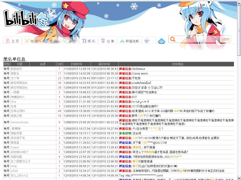 新作アニメがまとめてアップされているのはありがたいです。これで高画質なイカ娘やそれ町やミルキィホームズが好き放題見られるとアクセスすると、ビリビリ動画のトップページに『黒名単』という不穏な単語を発見しました。
