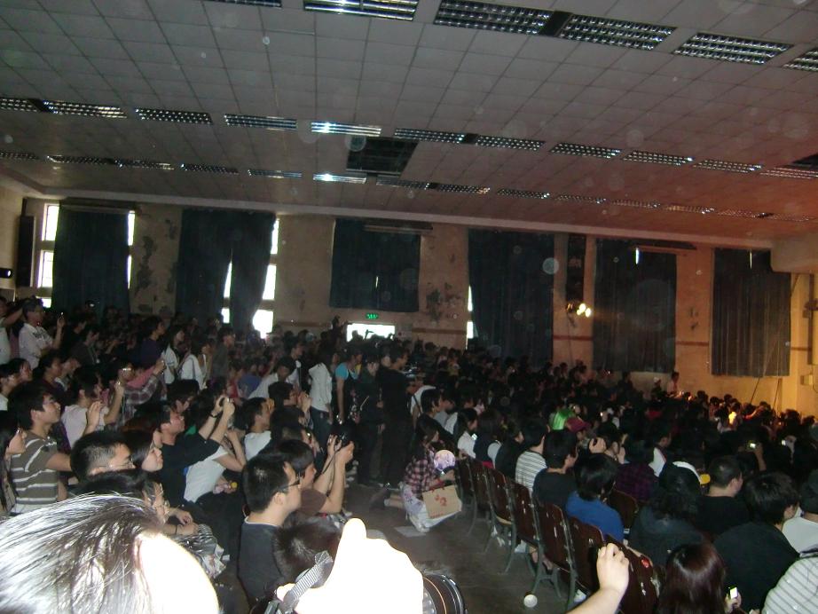 キャパシティ800人の講堂に1,000人は収納されており、ぼろい銭湯のサウナぐらいの気温だ。