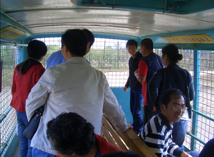 檻が付いたバスに乗って出発すると車内の係員がエサ売りを始めます。一台の車両で捕食シーンを見ることになるので乗客全員がワリカンで支払うシステムになっています。しかしそこは中国、奮発して個人で買う客もいます。ニワトリや山羊や牛などが売られているんですが、僕が乗った車には太っ腹な客はいなかったようでニワトリを五羽ほど買うだけに終わりました。