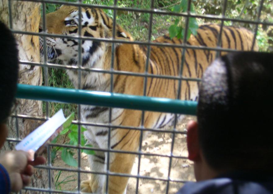 鉄網の間からチケットやペットボトルを出して虎に喰わせようとしてる奴ら