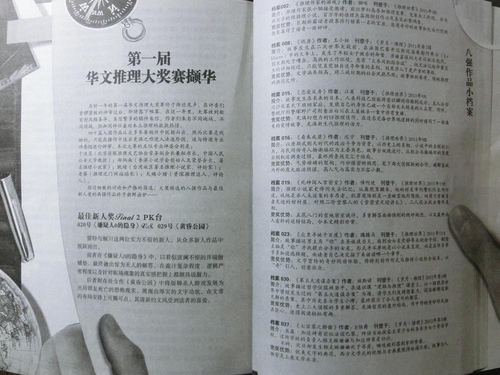 華文推理グランプリには1等賞(賞金10,000元)と2等賞(賞金5,000元)、3等賞(賞金3,000元)が設けられておりますが、この8作品の中から受賞作品は現れるのでしょうか。また最優秀新人賞(賞金1,000元)の栄光は果たしてどちら新人作家に輝くのか。