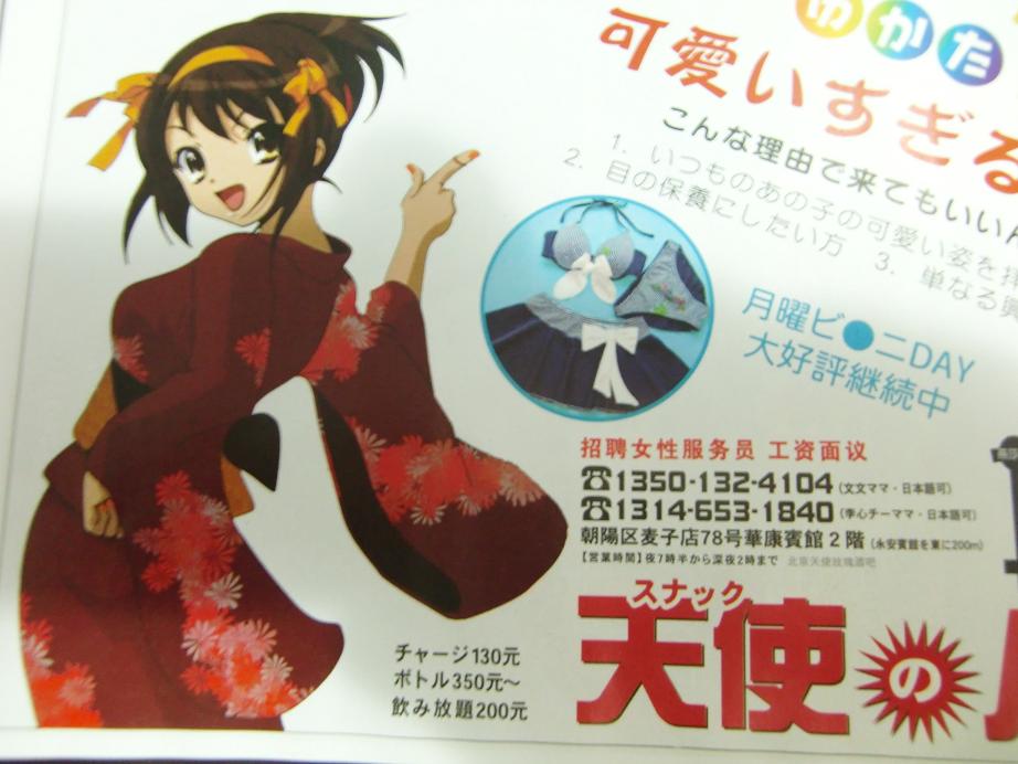 その中の一冊に北京のナイトスポットを紹介している雑誌がある。スナックやクラブの広告には雑誌の規定で人物の写真を使ってはいけなかったり、扇情的な言葉を載せてはいけなかったりする。だから各雑誌ともに間接的な表現を用い、写真がダメならとイラストを持ち出してくる。