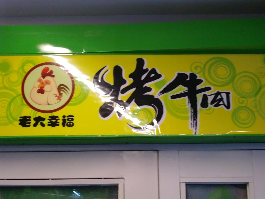 『烤牛肉』って焼肉って意味なんですけど、なんでニワトリがマスコットキャラなの?調べたら『老大幸福』も店名じゃないみたいだし。