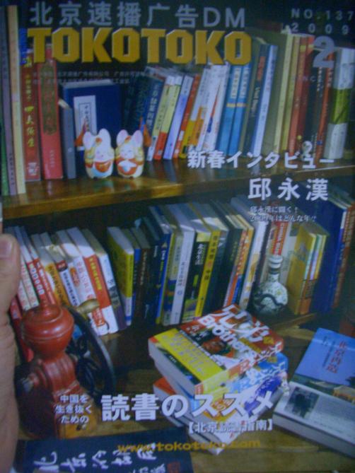 北京情報誌トコトコ二月号。留学生版トコトコ(写真右)もあるのだが、中身は断然こっちの方が充実している。今月号では邱永漢氏のインタビューが掲載されているほか、しゃおりんさんが執筆された『物語北京』の書評も載っている。