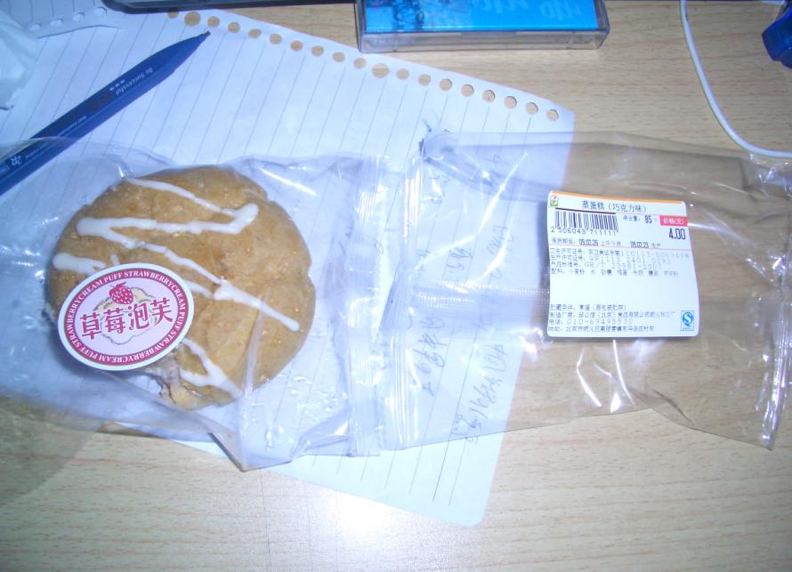 そしてシュークリーム(苺味)【食いかけ】と蒸しパン(チョコ味)【食済】だ。どっちも食った後に写真撮り忘れたことに気付いた。