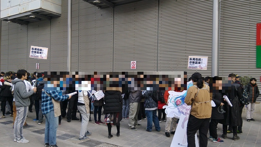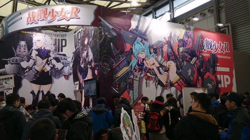 中国ではおなじみのゲーム『戦艦少女』(『艦これ』とは異なる)のグッズを買おうとブースの外まで長蛇の列が並んでいる。