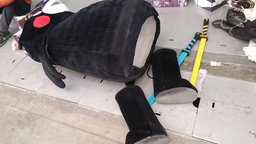 くまモンの抜け殻。多分中の人がトイレにでも行ったのだろう。