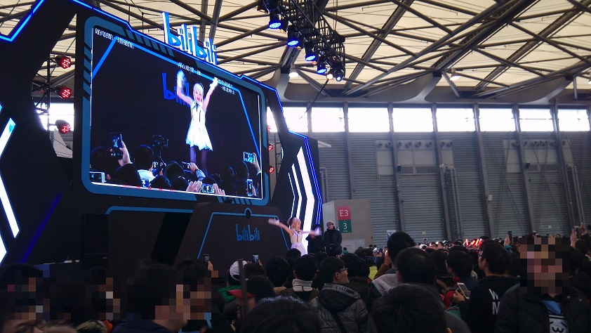 メインはやはりBILIBILI動画か。会場入ってすぐ見えるBILIBIRIの大きなモニターではその真下のステージで踊るコスプレイヤーのダンスが映し出されている。