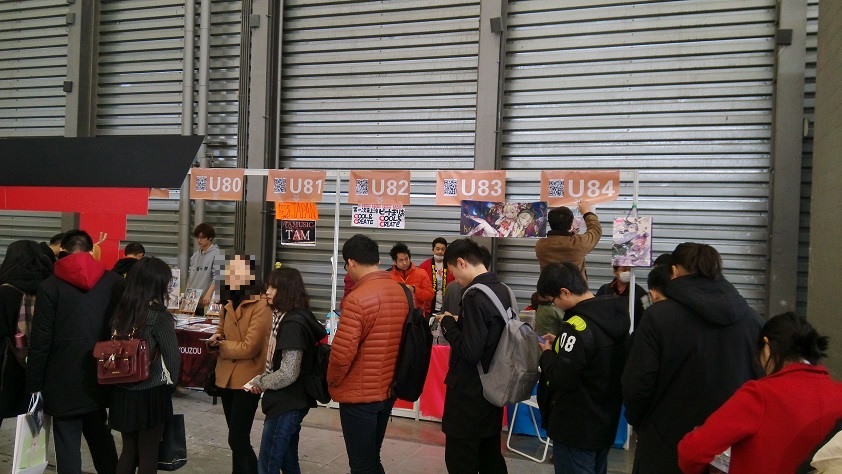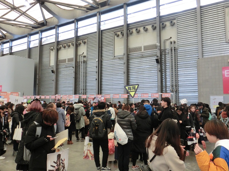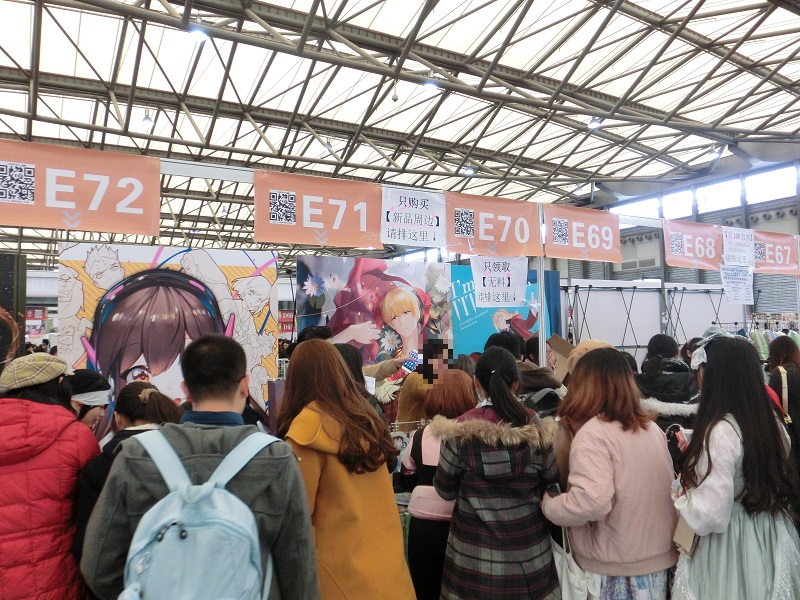 当然来場者も女性の方が多い…気がする。少なくとも、同人エリアには女性来場者の方が多い。だからVIPチケットの購入者も大体が女性なのだろう。なにせ人気があり行列ができているブースに並んでいるのは大抵女性だった。特に今回で言うと「StudioRS現実幻境」というサークルは1日中行列が途切れることなく、2日目の10日はすでに画集など売り切れていたのにオマケ目当てにまだ大勢が並んでいた。