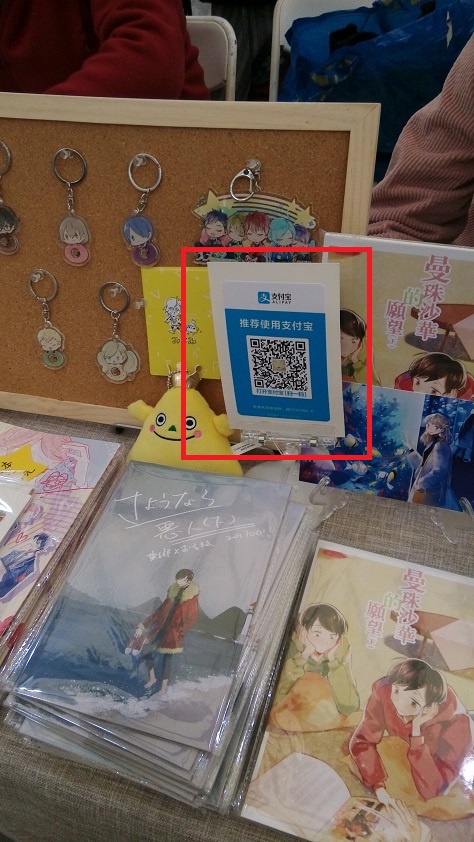 今回は早い段階で現金払いから微信支付(WeChat Pay)に切り替えたためか、購入した同人誌の数はCP20よりだいぶ多かった。ほとんどのサークルが微信支付か支付宝のどちらかに対応しており、サークル側も現金より電子マネーの方が便利そうだった。