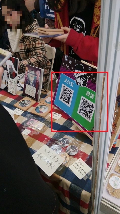 CP21では個人的にWechatやAlipayの電子マネーが大活躍した。おそらく全てのブースが電子マネーに対応していたが、WechatやAlipay両方対応しているところもあれば、Alipayのみというところもあった。私のスマホにはAlipay機能がないので、そういう時は現金払いだった。電子マネーだと財布の中身を気にせずいくらでも使えるので、帰宅してから使った金額データを見て冷や汗を流すことにもなる。気付いたら大金を失っている同人イベントにおいてこれは諸刃の剣にもなりかねないが、消費金額をはっきりする上でこの方が便利だ。