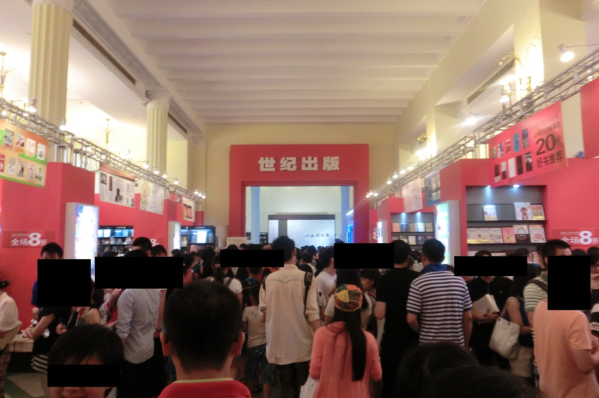 上海ブックフェアは中国全土の出版社が一般読者に本を売ることを目的にしているためにこのような混雑ぶりで、人気のある出版社では列が並ぶほどの大盛況を見せました。