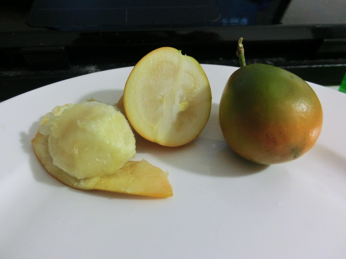 味の方はというと非常に淡白で酸味のかけらもなく、蜂蜜のような甘みを若干感じる。この微かな甘みが余計に金柑を想起させるのだが、この果物の隣に売られていたのが金柑だったので別種なのだろう。