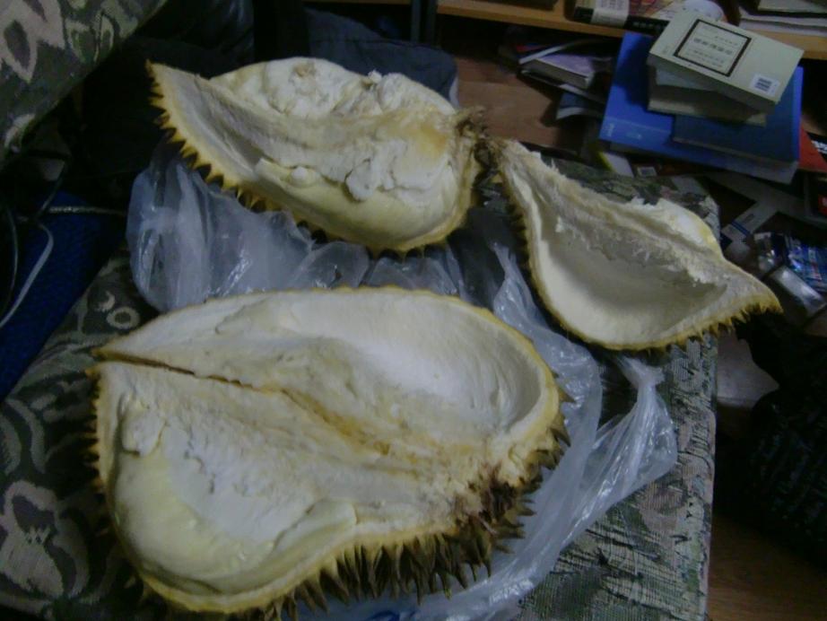このドリアンも硫黄臭はしますが、それを除けばむしろ良い香りなんじゃないでしょうか。これでは納豆やキムチにすら負けそうな臭いです。